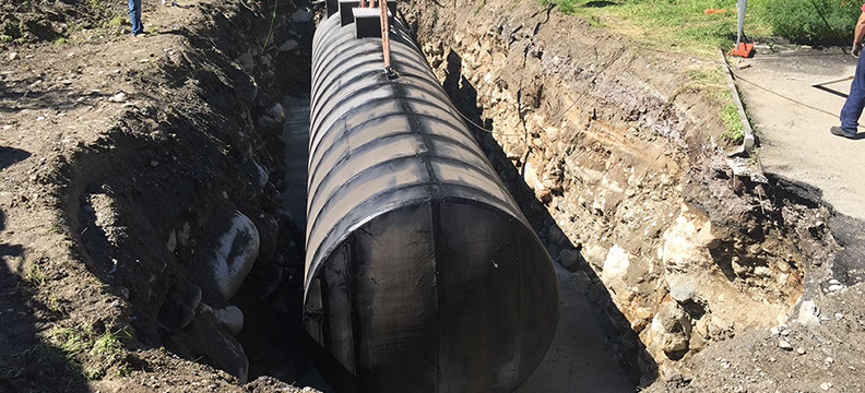 Stazione di pompaggio con serbatoio di accumulo acqua
